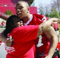 Rice (left) and his mom Janet celebrate after Rutgers wins the 2008 International Bowl. Rice constantly referred to his mom as his inspiration and major factor of his success.